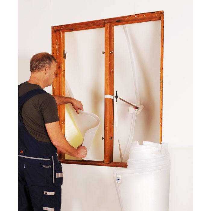 Isoleringen monteras efter att paraplyet satts på plats och består av två delar som enkelt sätts ihop på mitten med kardborreinfästning. Materialets styvhet i kombination med en förböjd kantzon som pressar mot fasaden ger bättre täthet på släta fasadmaterial.